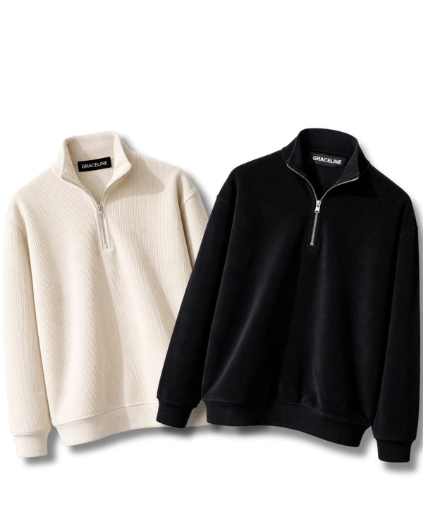 Corduroy Quater Zip Sweater (Black)